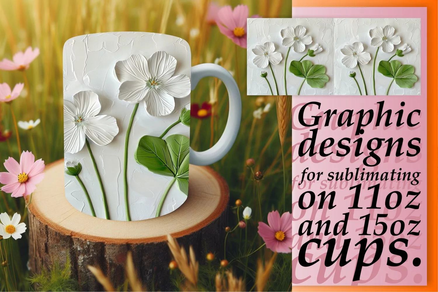 3D Flower Serenity: Mug Wrap Sublimation