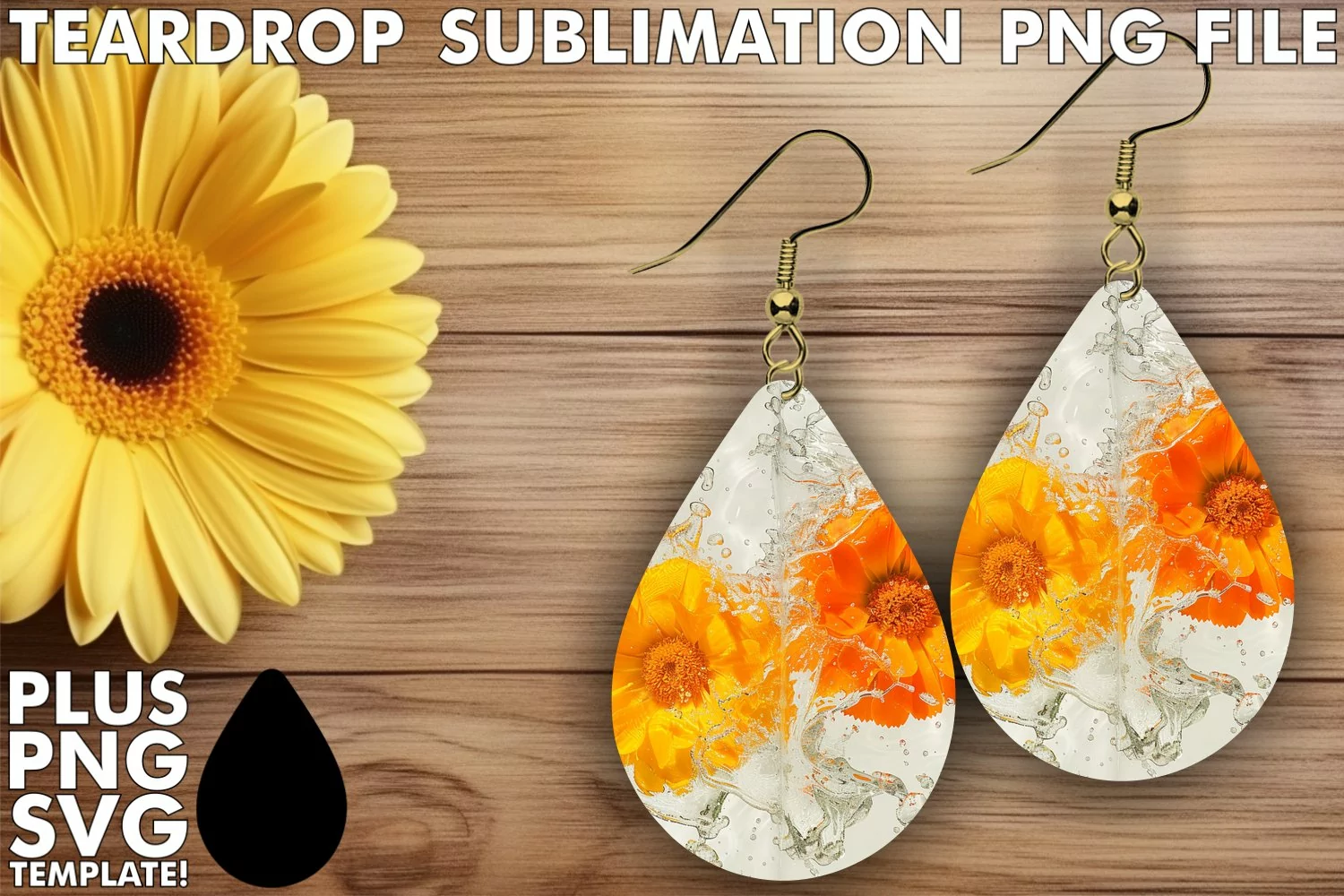 Petal Harmony: Teardrop Earrings Sublimation Designs PNG example image 1