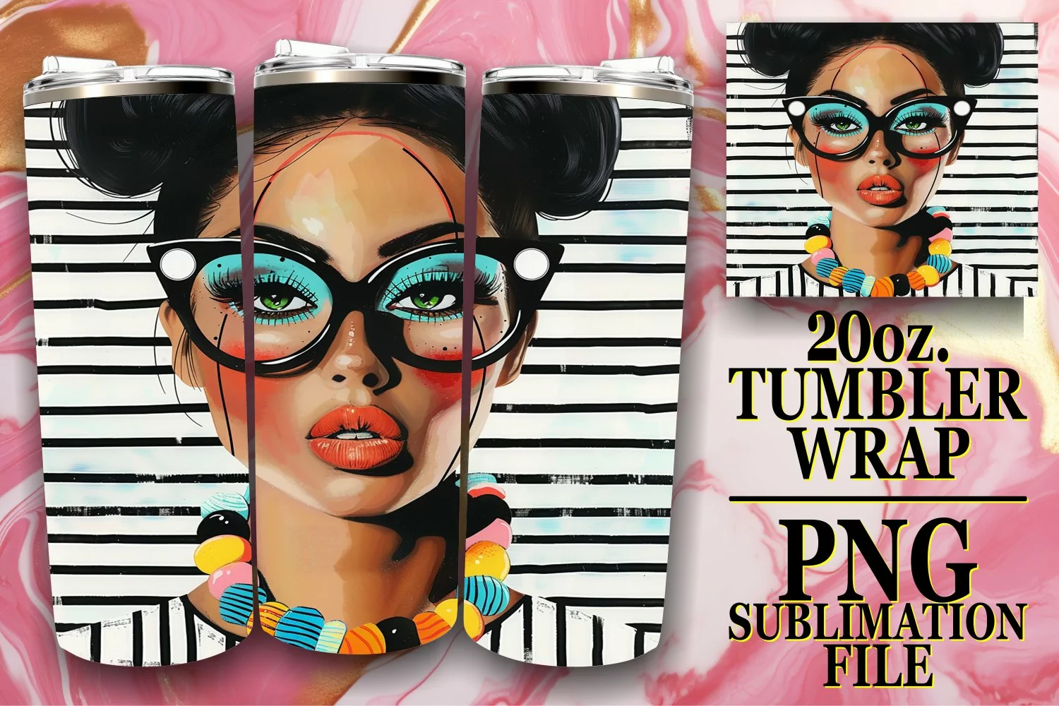 Portrait Elegance: Striped Pattern Tumbler Sublimation, 20oz example image 1