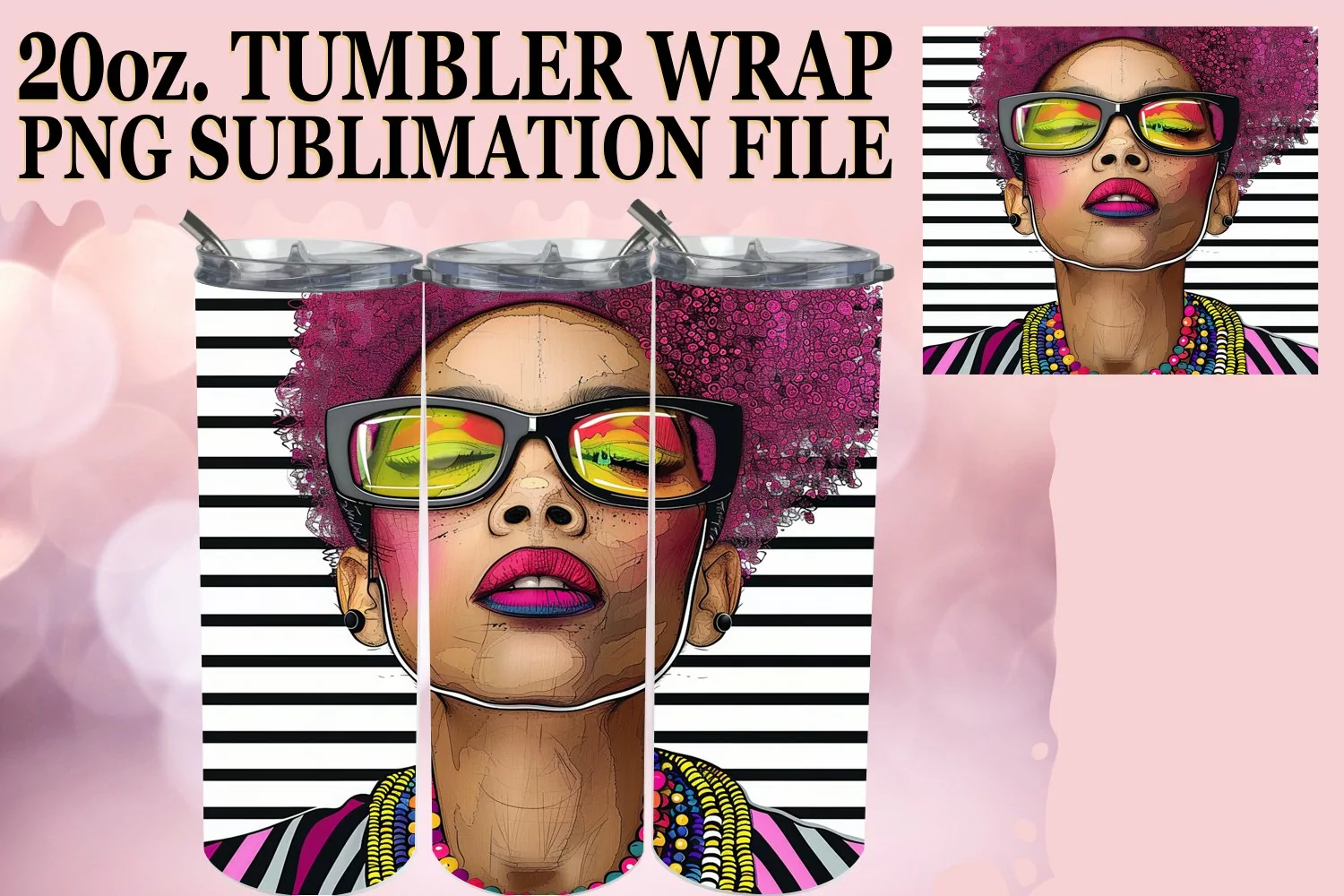 Melanin Marvel: Striped Pattern Tumbler Wrap, 20oz