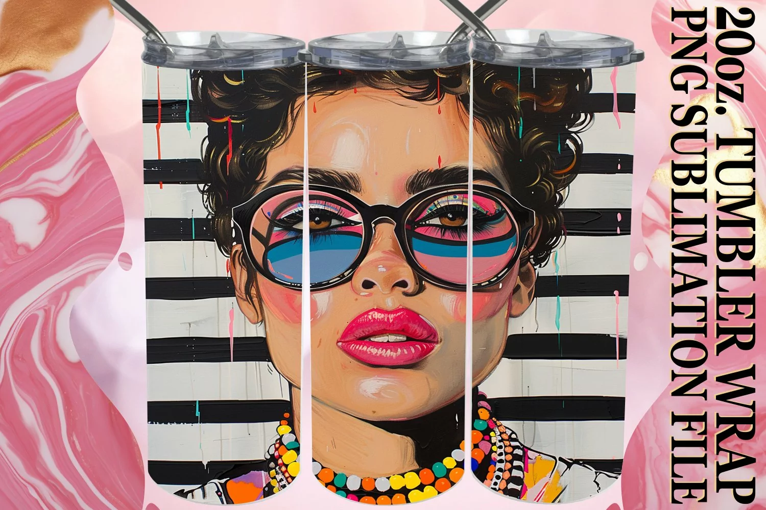 Melanin Majesty: Portrait Pattern Tumbler Sublimation, 20oz