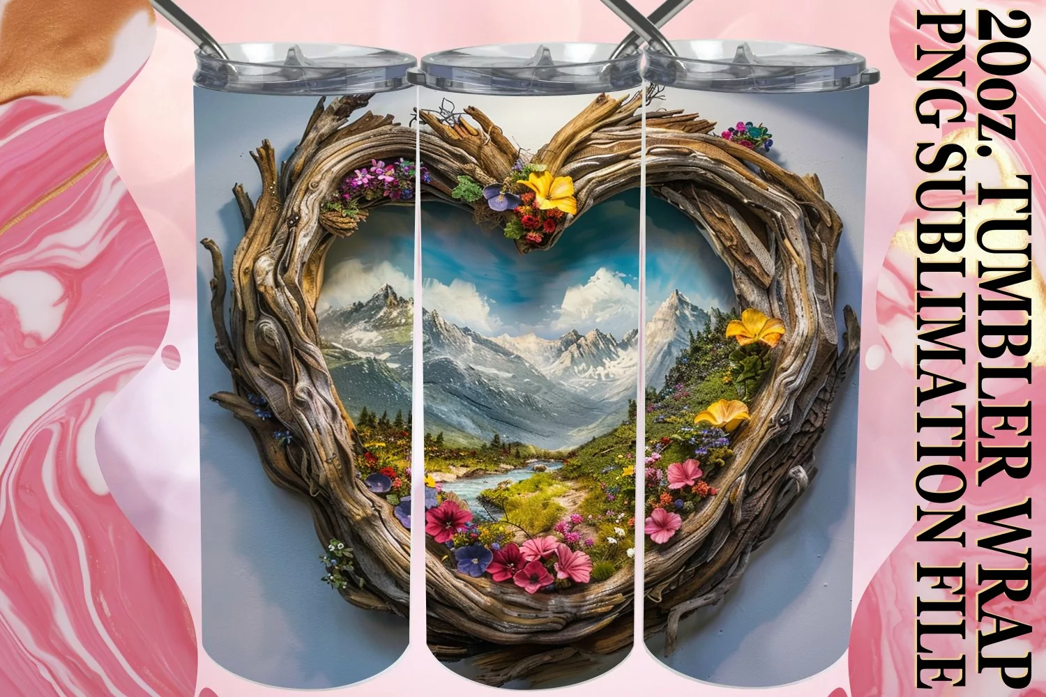 Rustic Reverie: 20oz Wood Heart Sublimation example image 1
