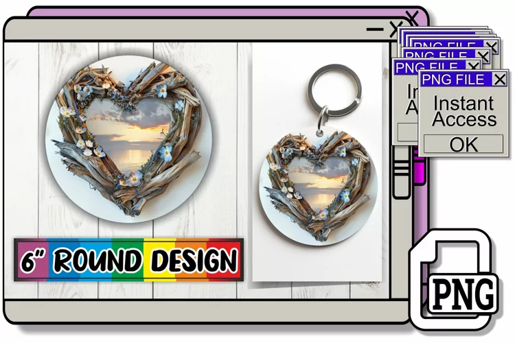 Similar Design Products to Scenic Serenade: Wooden Heart Keychain PNG