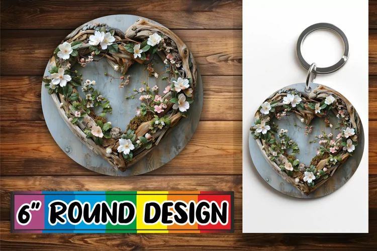 Heart Pattern Flower Watercolor Keychain Sublimation Sublimation Ornaments Heart Sublimation Design Valentines Keychain Round Ornaments Design Doddle Heart Boho Watercolor Animals Valentines Keychchain