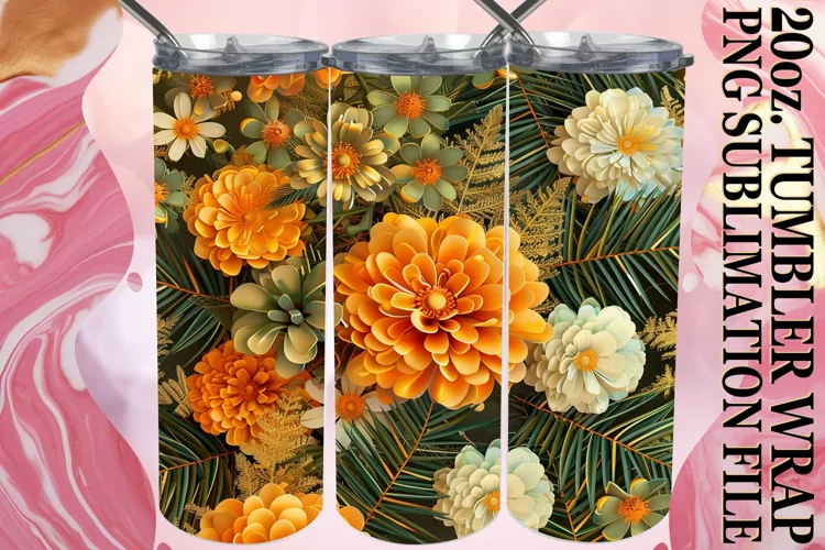 Flower Pattern Png Digital Sublimation File Flower Sublimation Png 20oz Tumbler Wrap Watercolor Tumbler Wrap 3d Flower Png Skinny Sublimation Digital Download Tree Sublimation Design Bloom Pattern 3d Glitter Tumbler Wrap