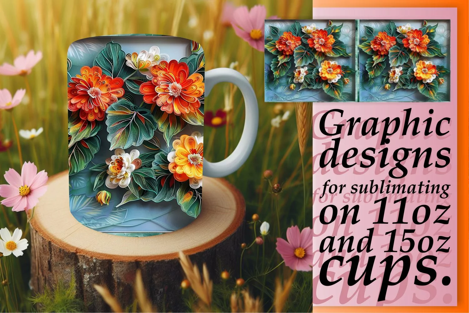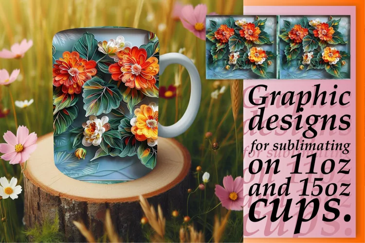 Vibrant Spring 3D Flower Mug Wrap - 11oz & 15oz example image 1