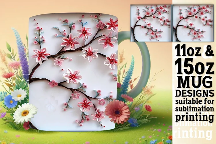 Spring 3D Flowers Mug Wrap - Sublimation Art