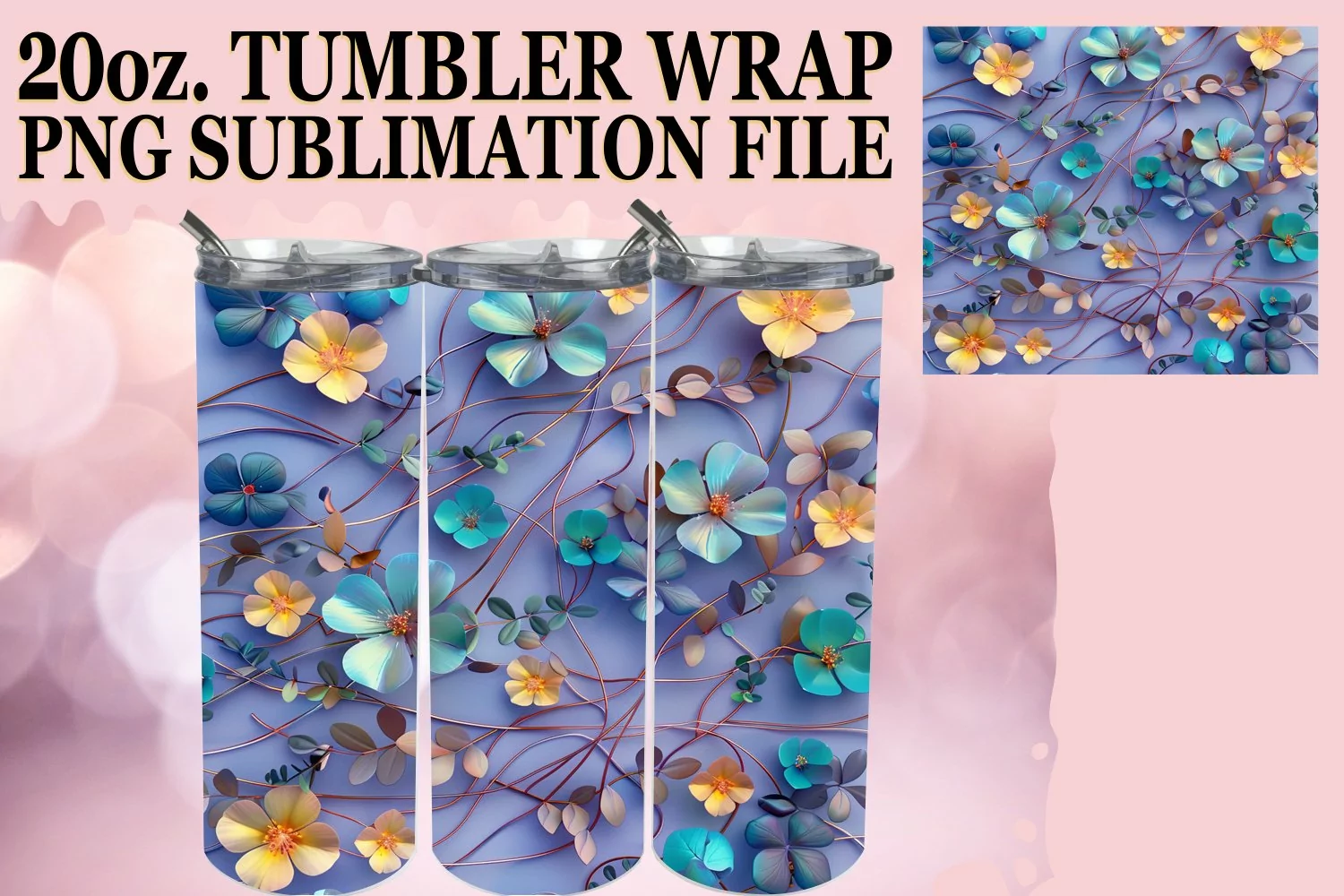 Flower Pattern Png Digital Sublimation File Flower Sublimation Png 20oz Tumbler Wrap Watercolor Tumbler Wrap 3d Flower Png Skinny Sublimation Digital Download Tree Sublimation Design Bloom Pattern 3d Glitter Tumbler Wrap