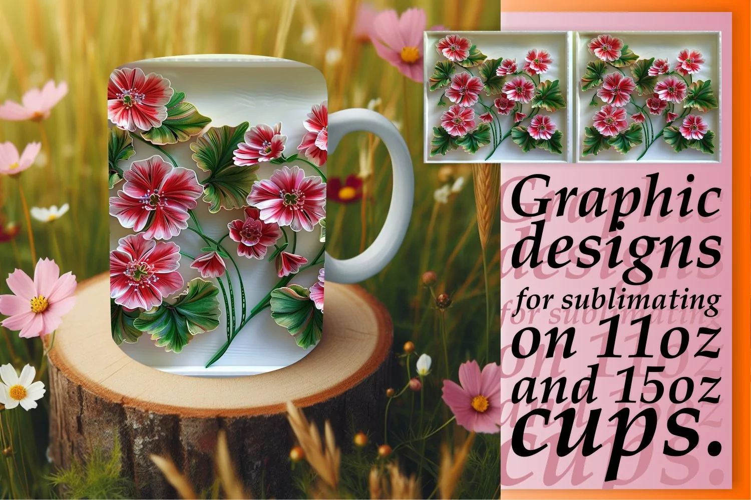 3D Spring Flower Mug Wrap - Sublimation Art