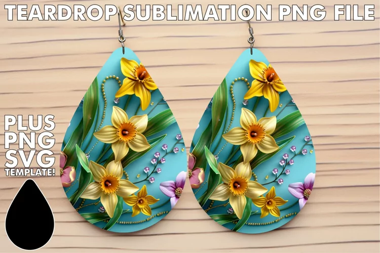 Springtime Magic: 3D Teardrop Earring Floral Print PNG example image 1
