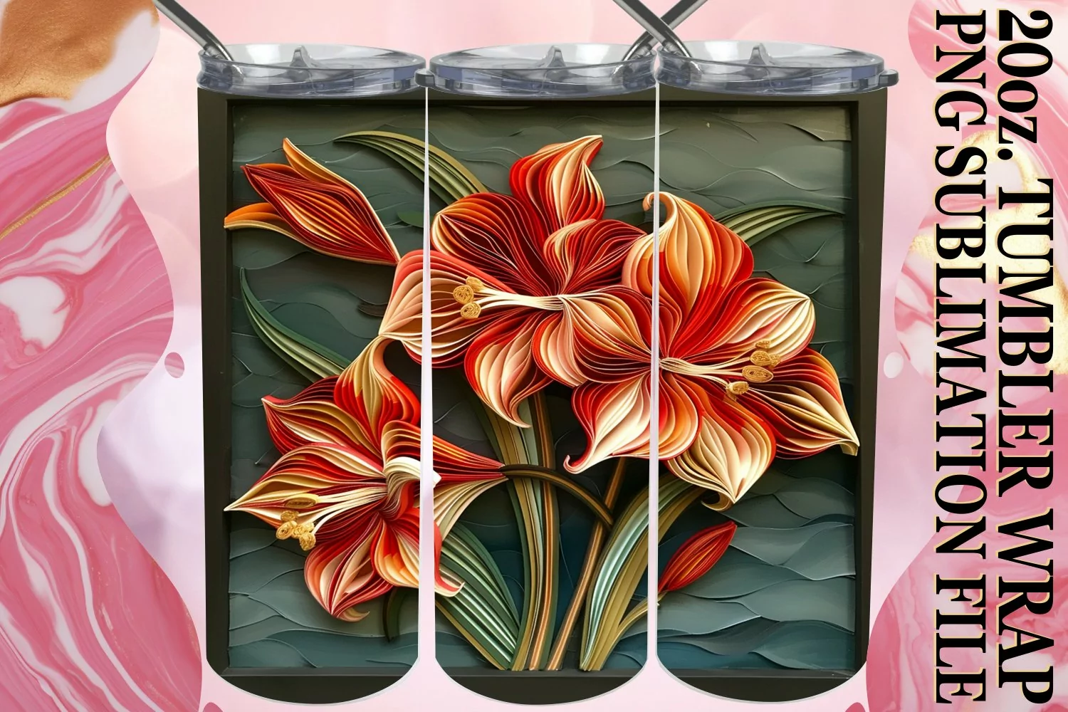 3D Flower Tumbler Wrap - Spring Design for Sublimation example image 1