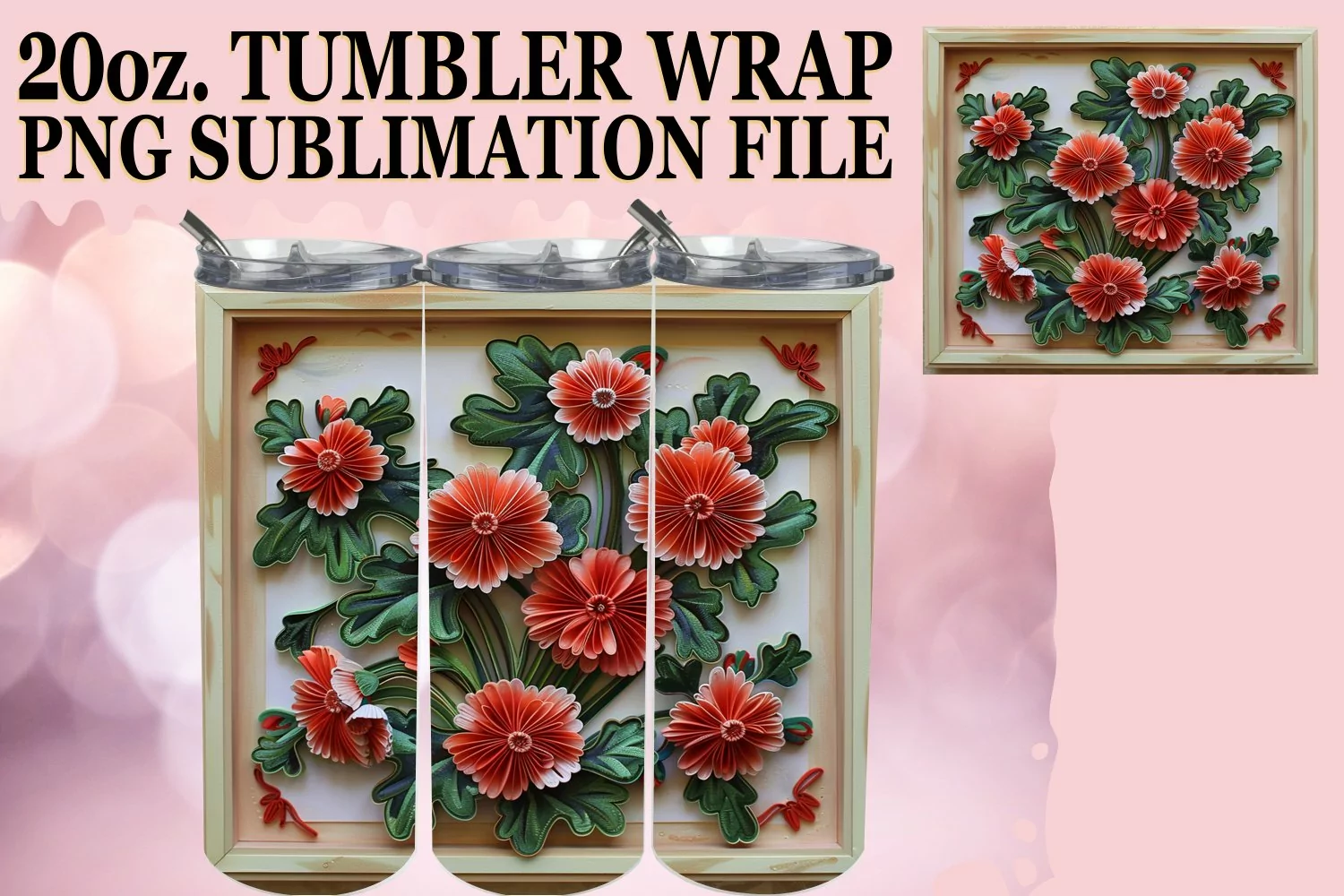 Flower Pattern Png Digital Sublimation File Flower Sublimation Png 20oz Tumbler Wrap Watercolor Tumbler Wrap 3d Flower Png Skinny Sublimation Digital Download Tree Sublimation Design Bloom Pattern 3d Glitter Tumbler Wrap
