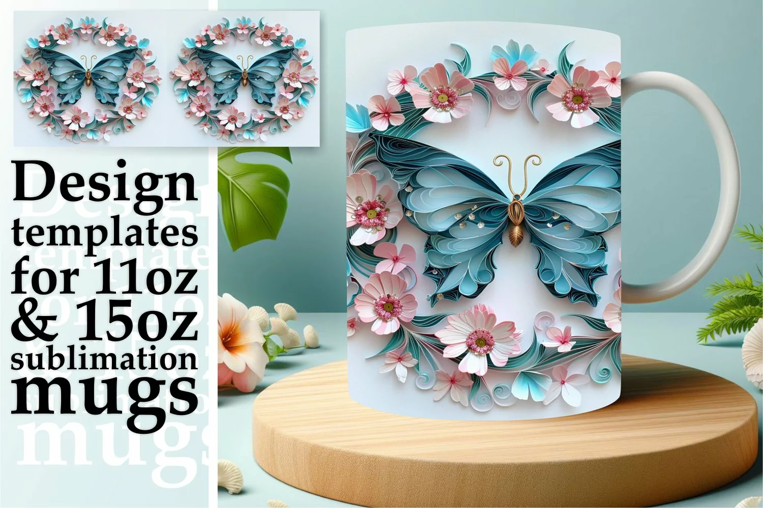 Spring Garden Butterfly Mug Wrap - 11oz/15oz 3D Art example image 1