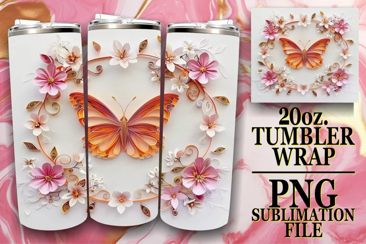 3D Butterfly Flower Tumbler Wrap - 20oz Spring Art example image 1