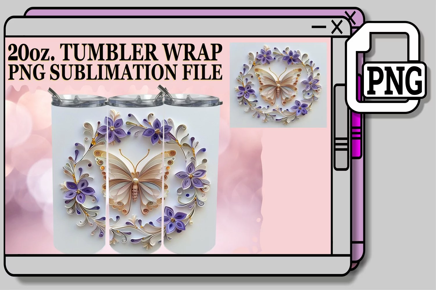 3D Spring Blooms Tumbler Wrap - 20oz Butterfly Design example image 1