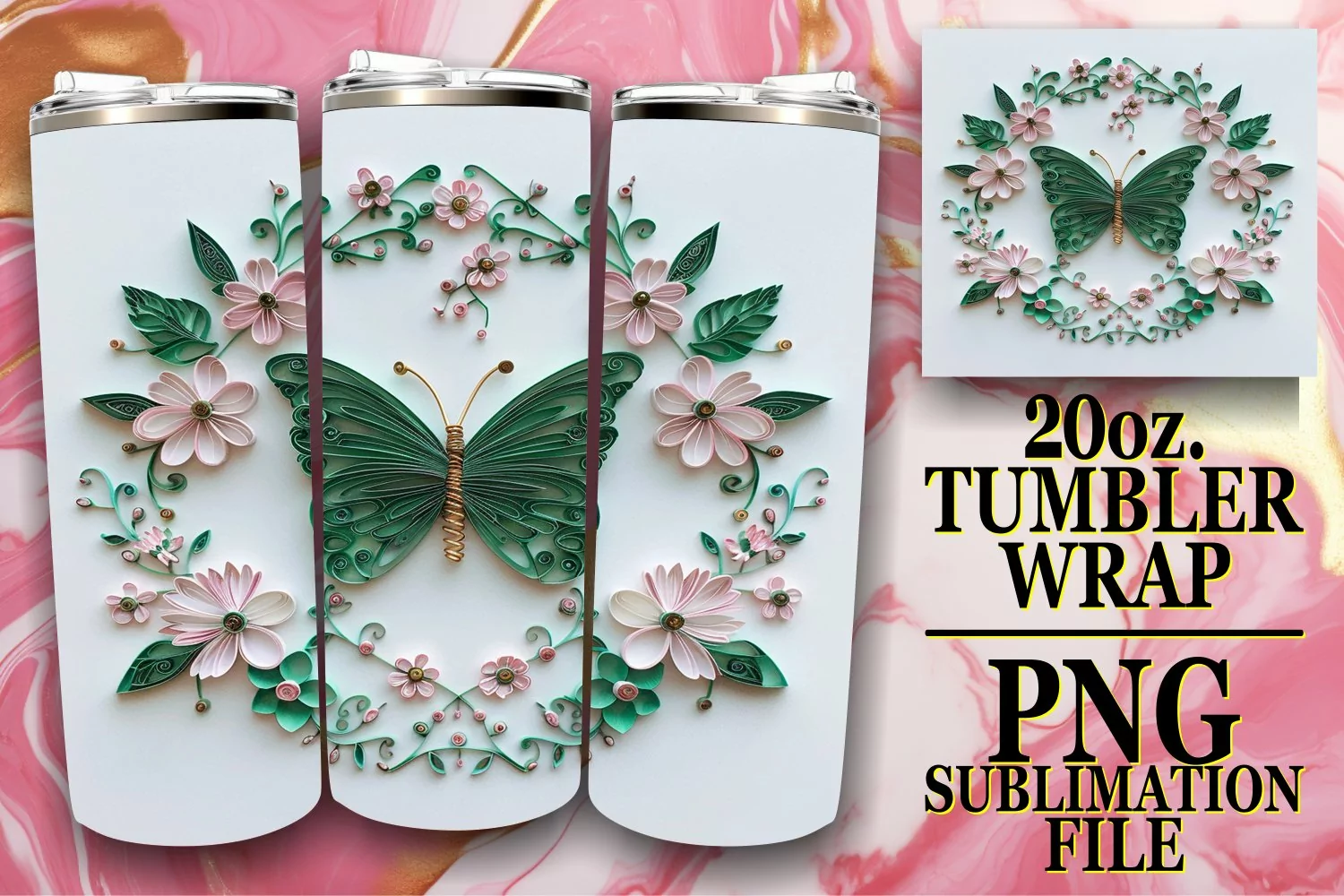 3D Spring Blooms Tumbler Wrap - 20oz Butterfly Art example image 1
