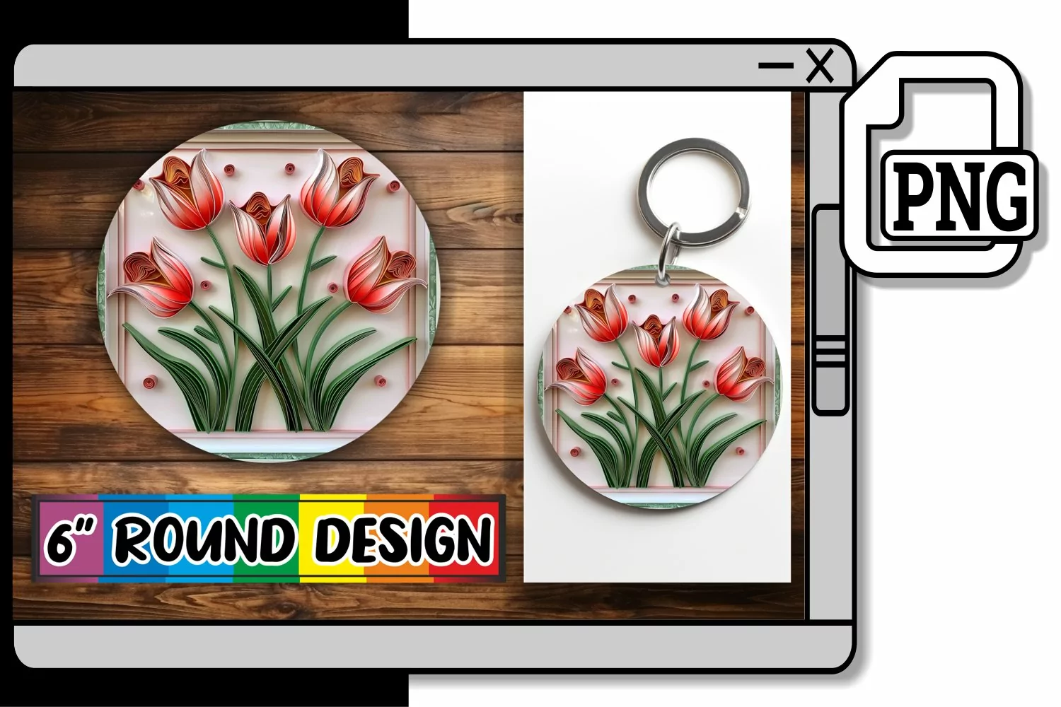 Spring Floral Circle Keychain Design 3D Sublimation Art example image 1