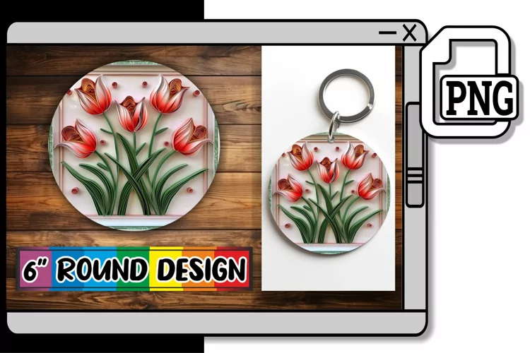 Spring Floral Circle Keychain Design 3D Sublimation Art