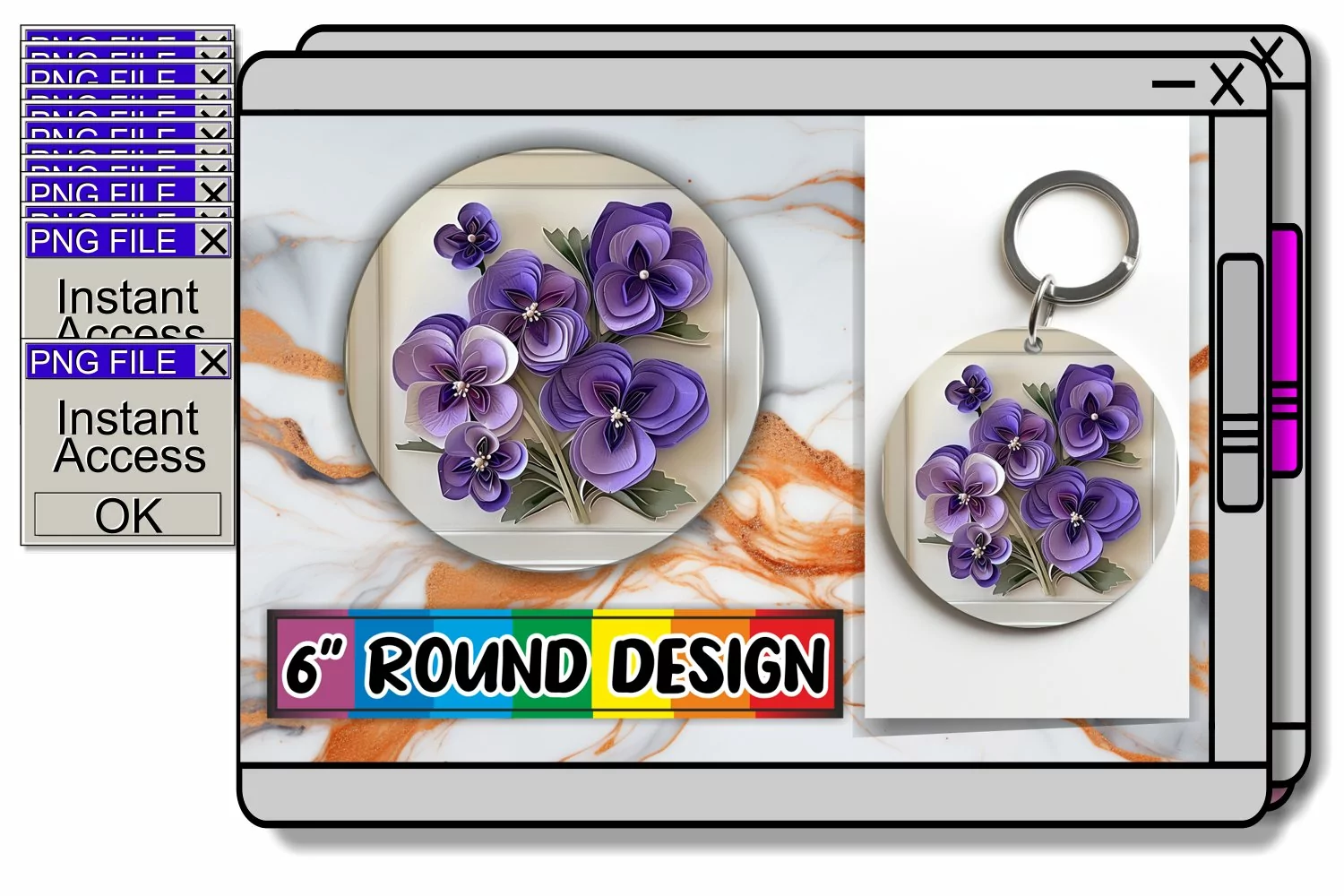3D Spring Floral Keychain Circle Design Beautiful example image 1