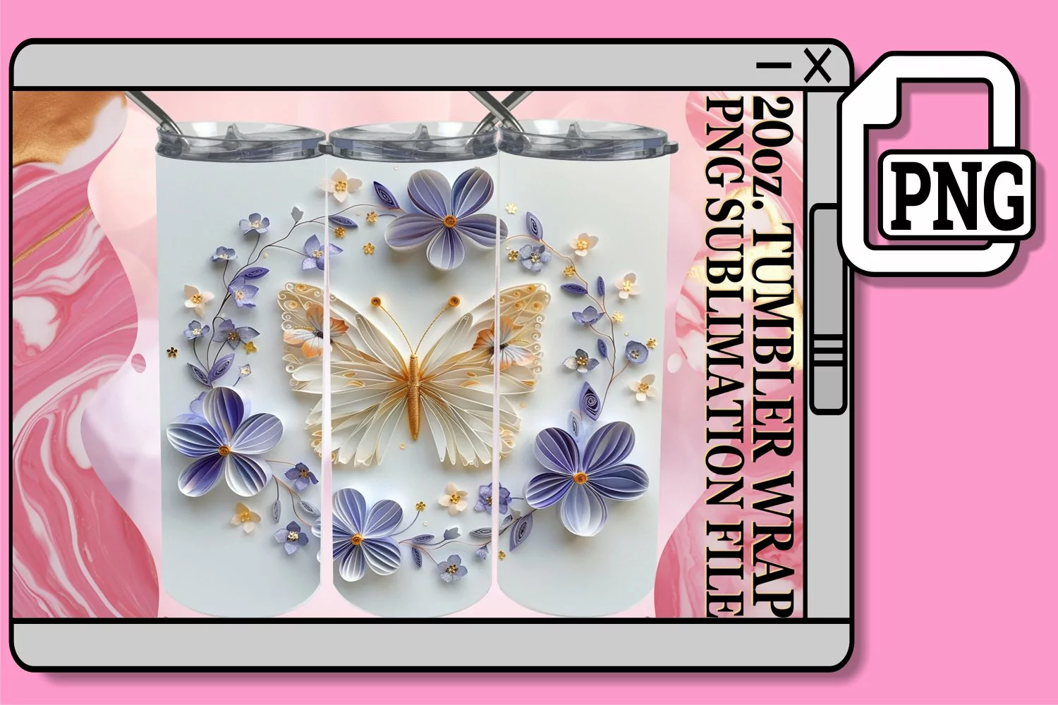 Spring Blooms Tumbler Wrap - 20oz 3D Butterfly Garden example image 1
