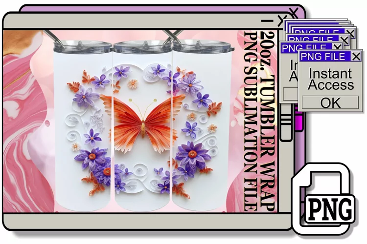Flower Pattern Png Digital Sublimation File Flower Sublimation Png 20oz Tumbler Wrap Watercolor Tumbler Wrap Butterfly Tumbler Wrap 3d Flower Png Skinny Sublimation Digital Download Tree Sublimation Design 3d Glitter Tumbler Wrap