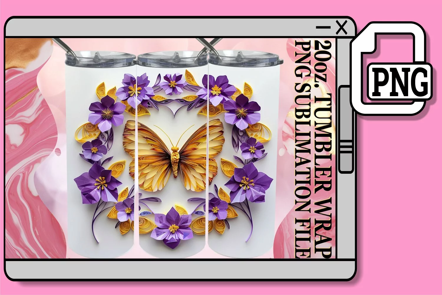 3D Butterfly and Spring Flowers Tumbler Wrap - 20oz example image 1