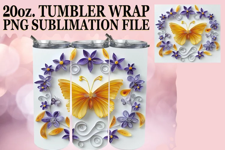 3D Spring Garden Tumbler Wrap - 20oz Butterfly Blooms