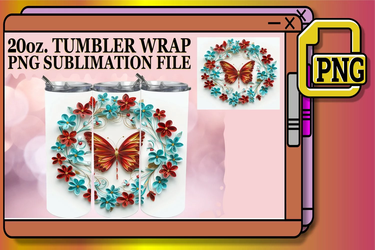 3D Spring Garden Tumbler Wrap - 20oz Butterfly Blooms example image 1