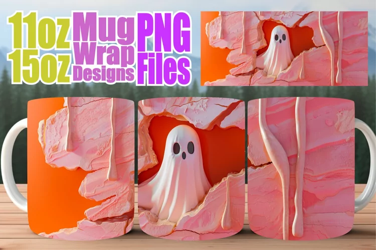 3D Spooky Ghost Mug Wrap - Fall Halloween 11oz 15oz