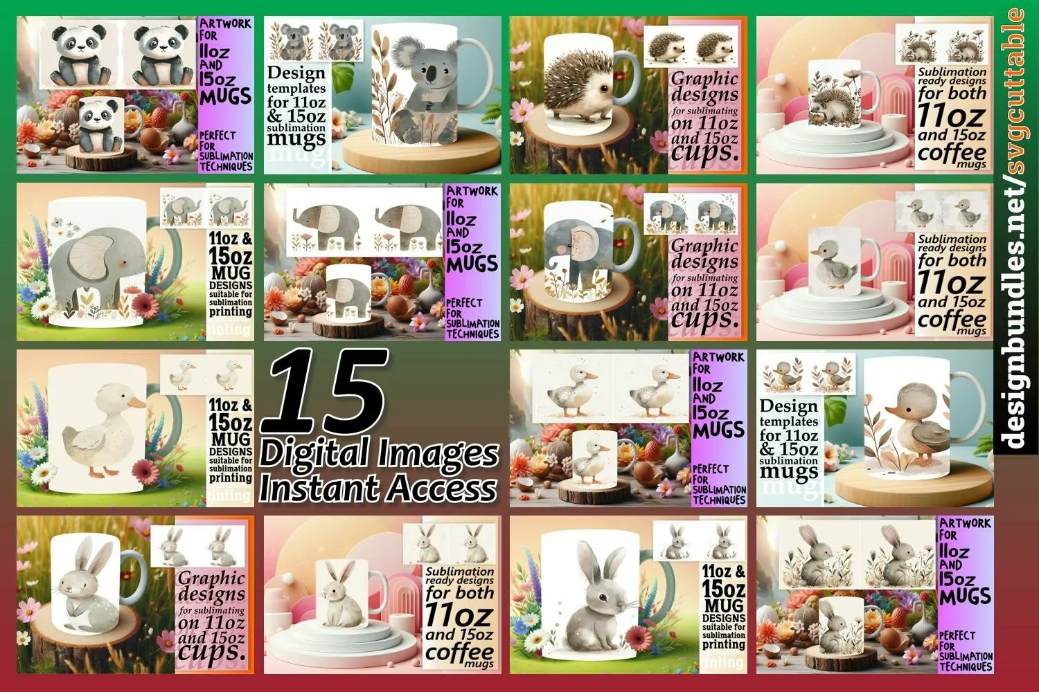 15x Boho Animals Mug Wrap Bundle PNG, Bunny PNG, 11oz 15oz