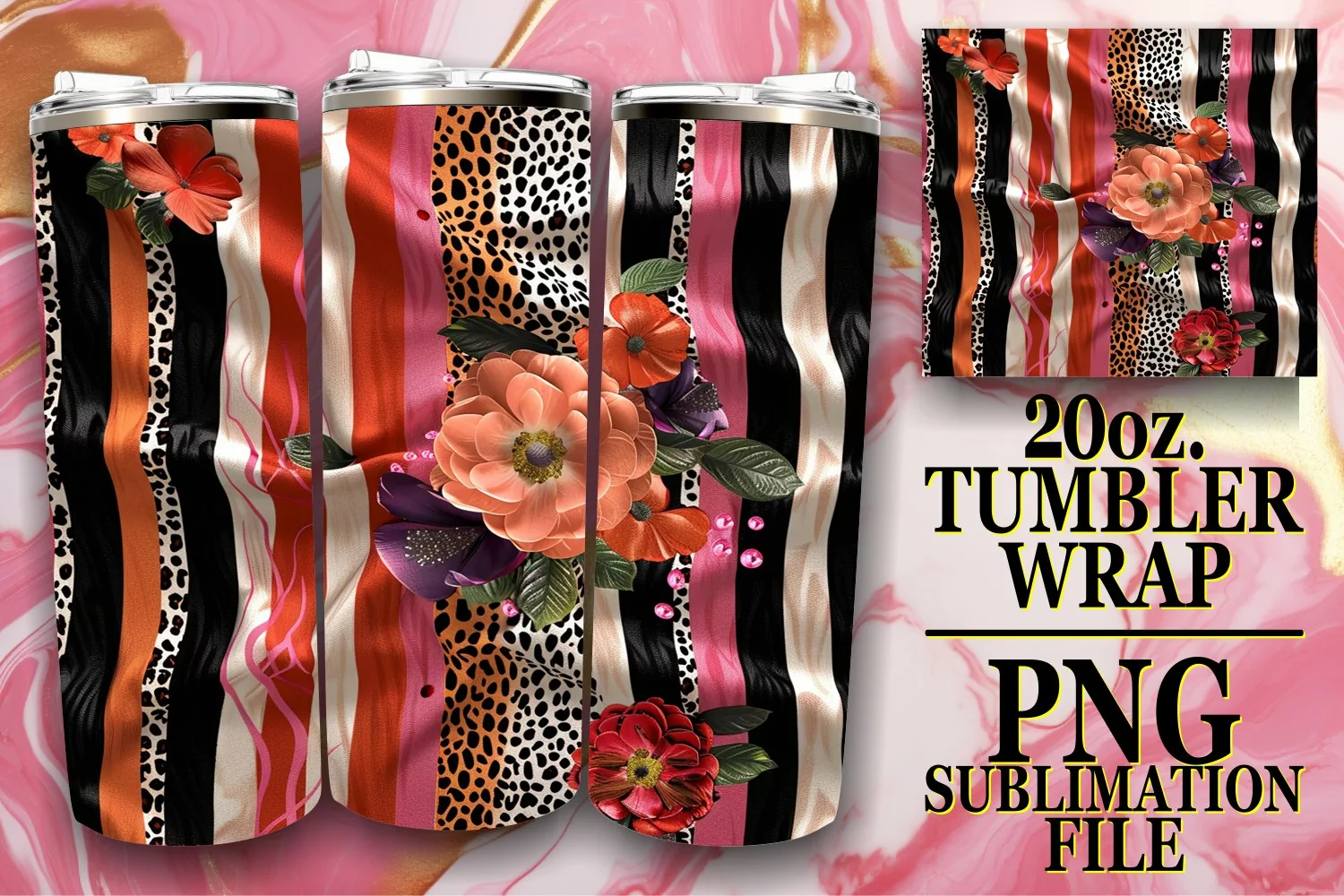 Similar Design Products to Vibrant 3D Leopard and Flower Tumbler Wrap Patterns
