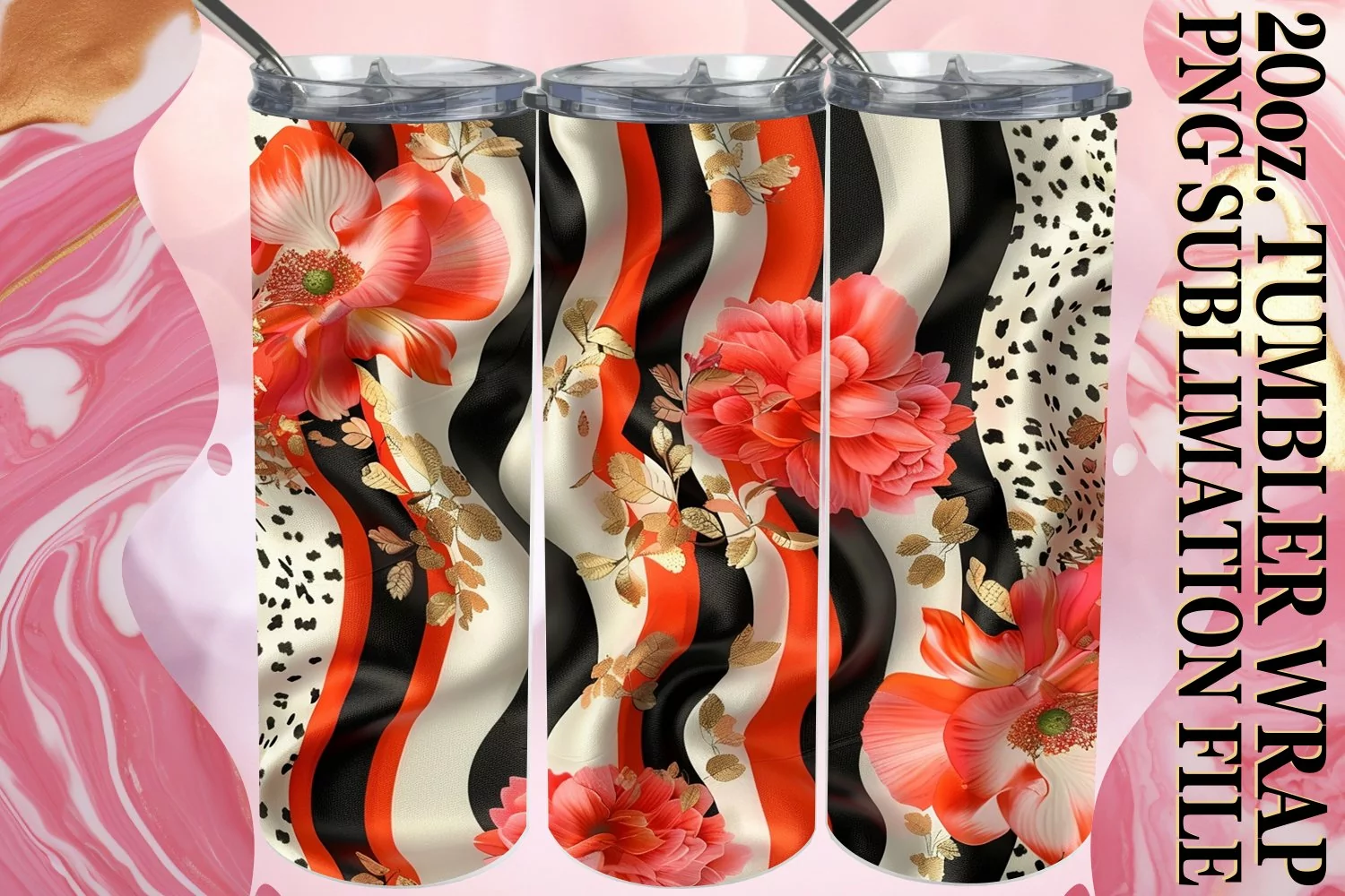 Similar Design Products to Elegant 3D Leopard and Flower Tumbler Wrap Designs
