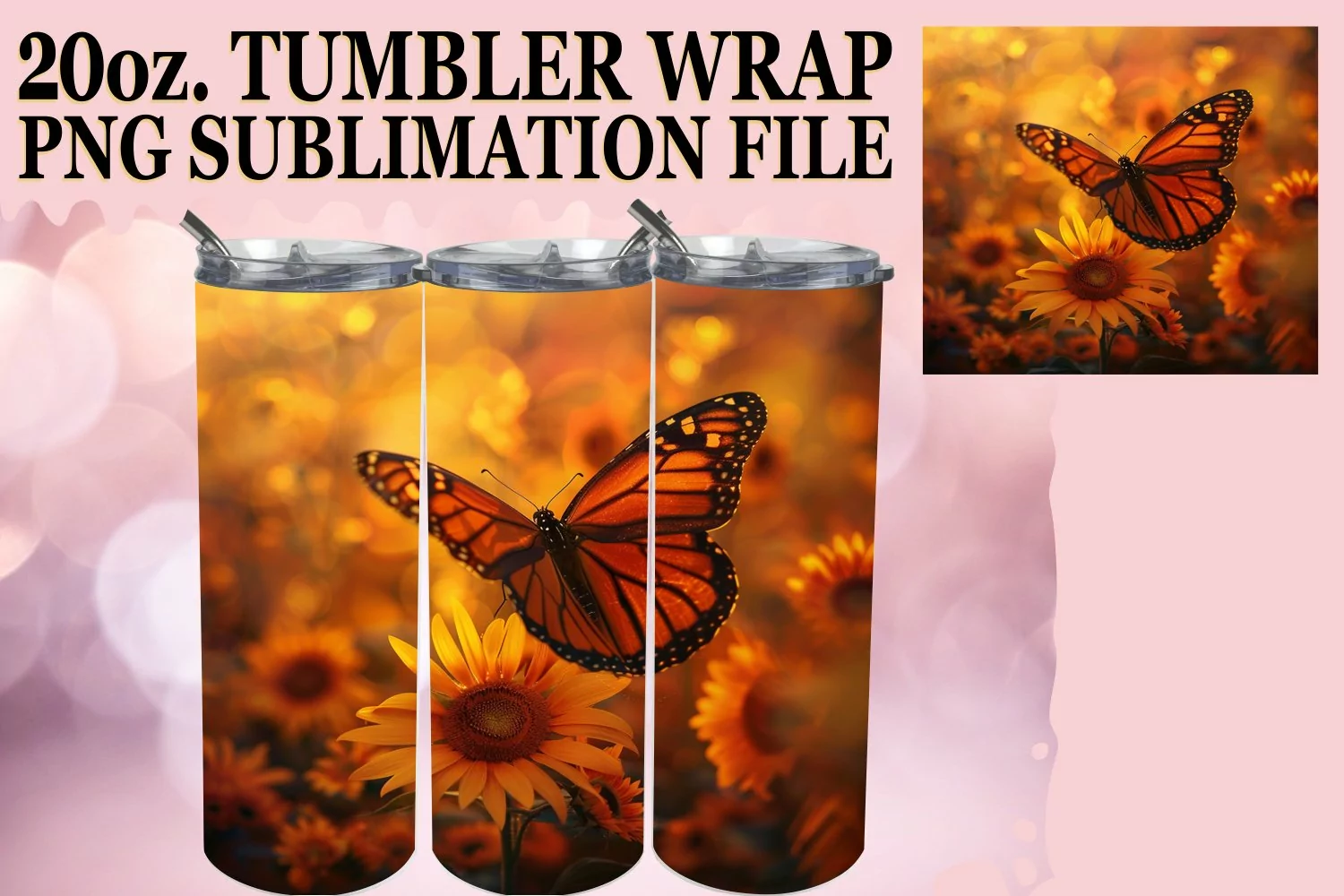Spring Elegance Tumbler with Butterfly Pattern - Sublimation example image 1