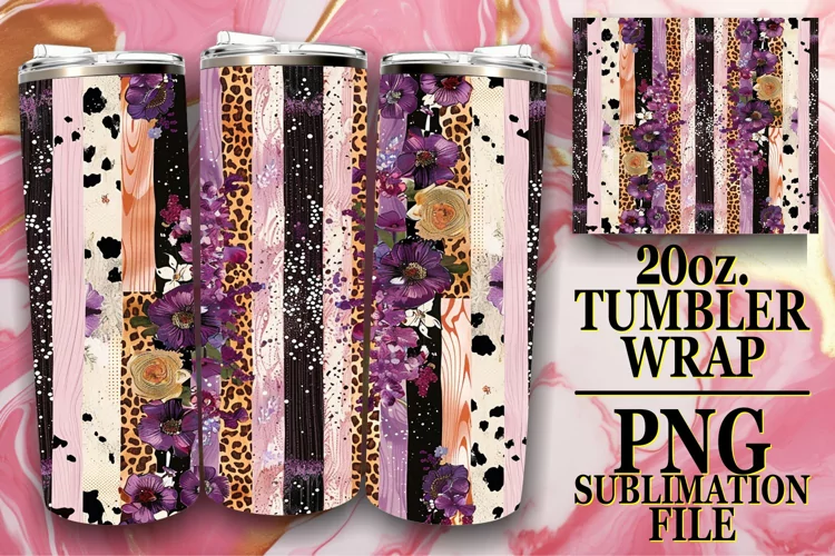 Flower Pattern Glitter Pattern Watercolor Png Leopard Pattern Png Digital Sublimation File 20oz Tumbler Wrap Watercolor Tumbler Wrap Flower Tumbler Wrap Leopard Prints Png Skinny Sublimation Digital Download