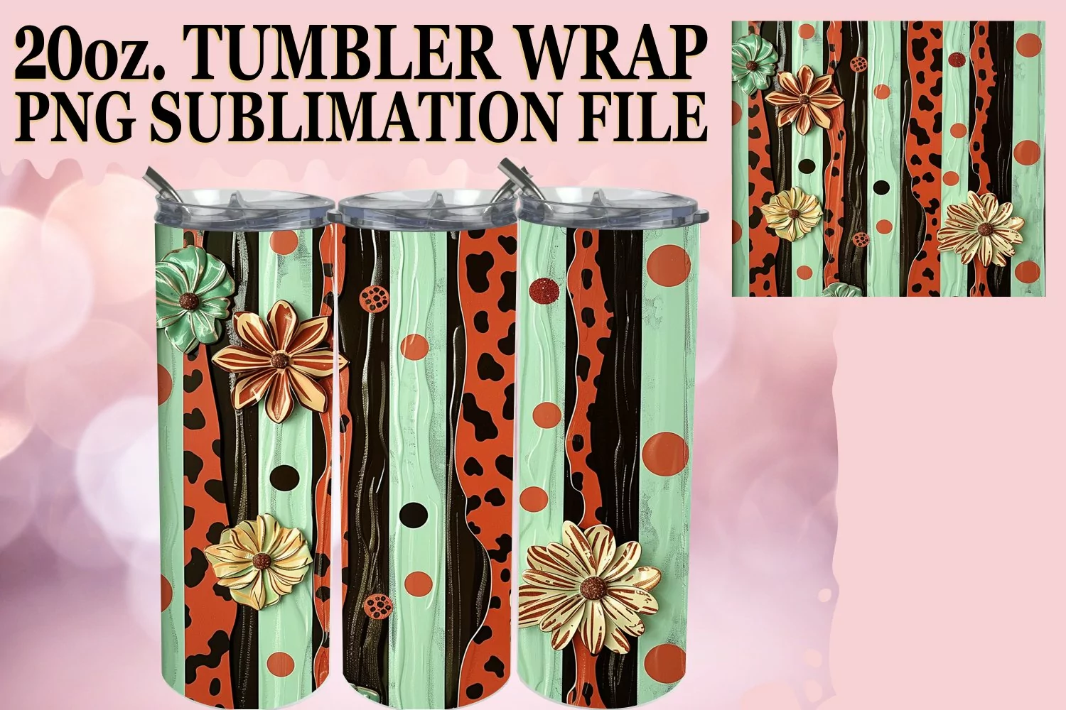 Similar Design Products to Elegant 3D Leopard and Flower Tumbler Wrap Sublimation