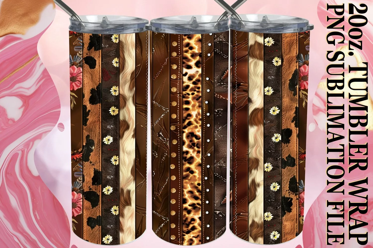 Colorful 3D Leopard and Flower Tumbler Wrap Designs