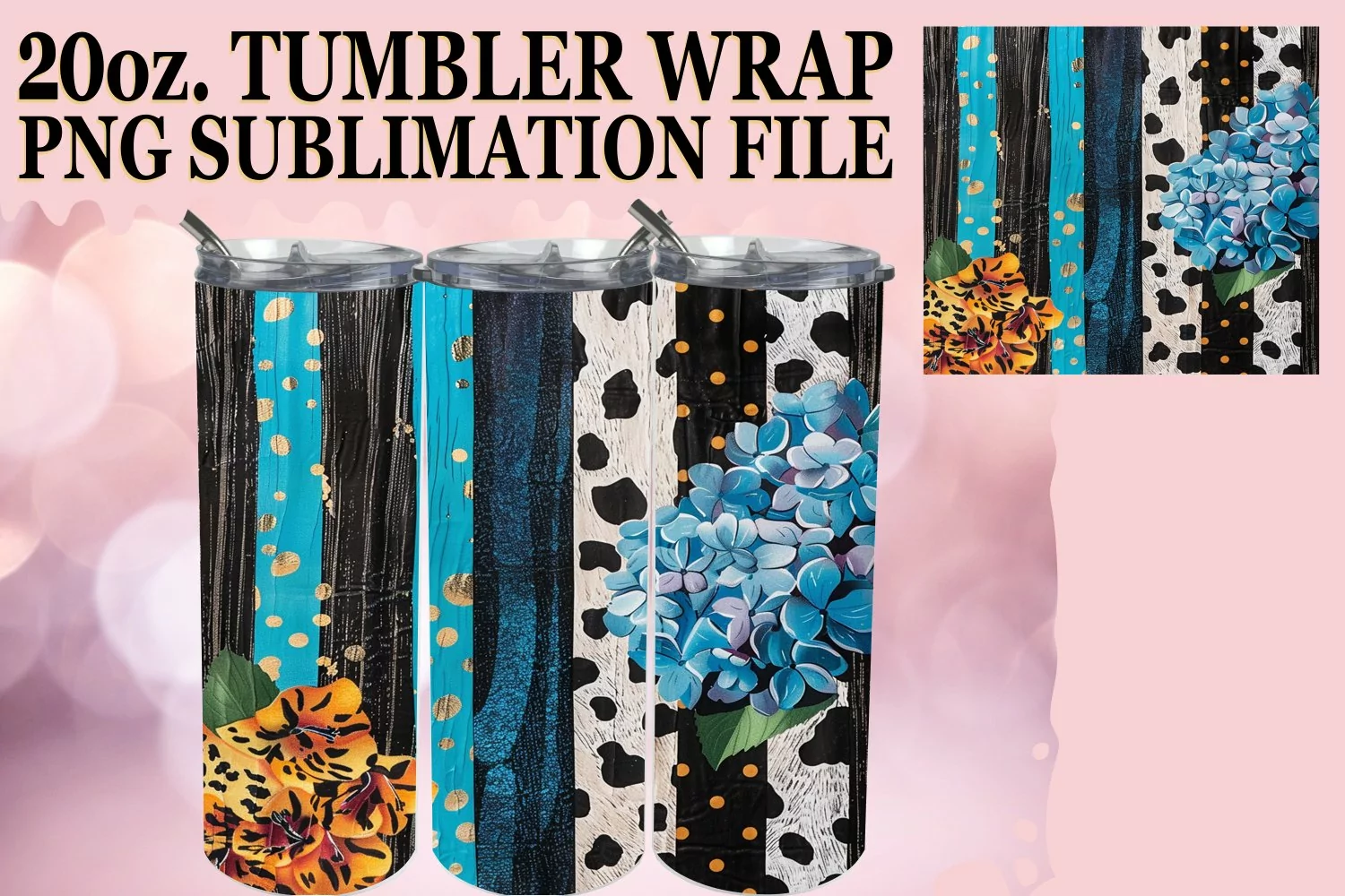 Chic 3D Leopard and Flower Tumbler Wrap Designs example image 1