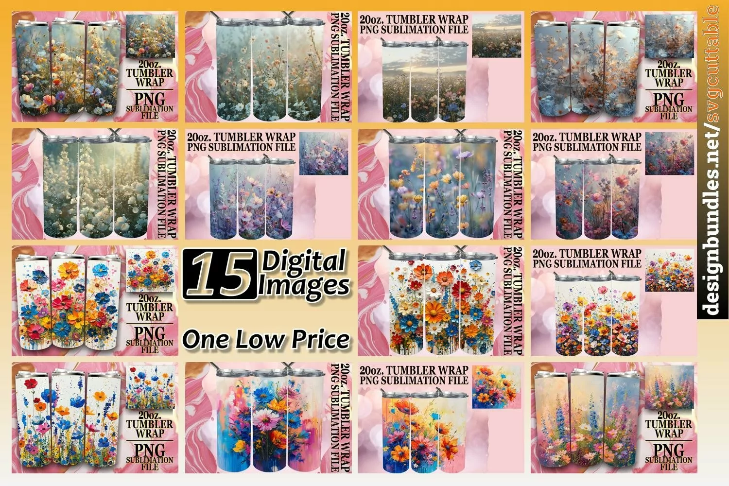 Similar Design Products to 15x Watercolor Botanical Tumbler Wrap Bundle PNG, Spring