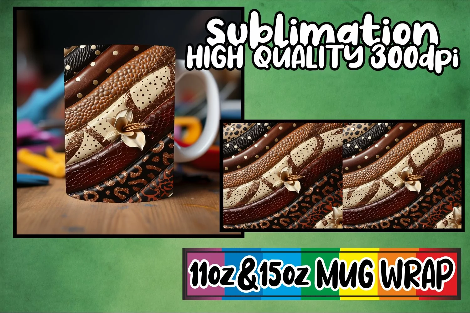 3D Leopard and Flower Mug Wrap Patterns