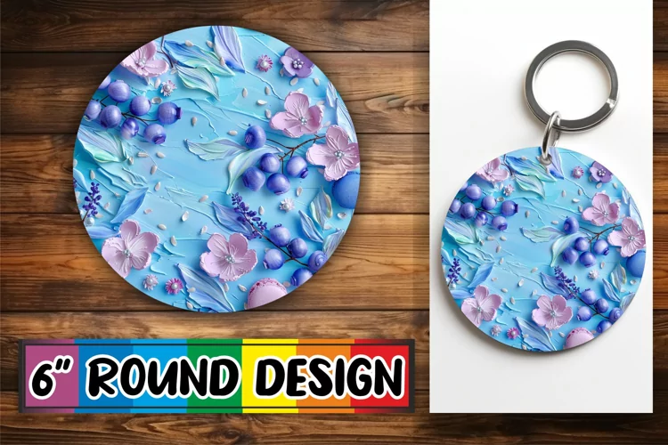 3D Flowers and Fruit Keychain Round Design