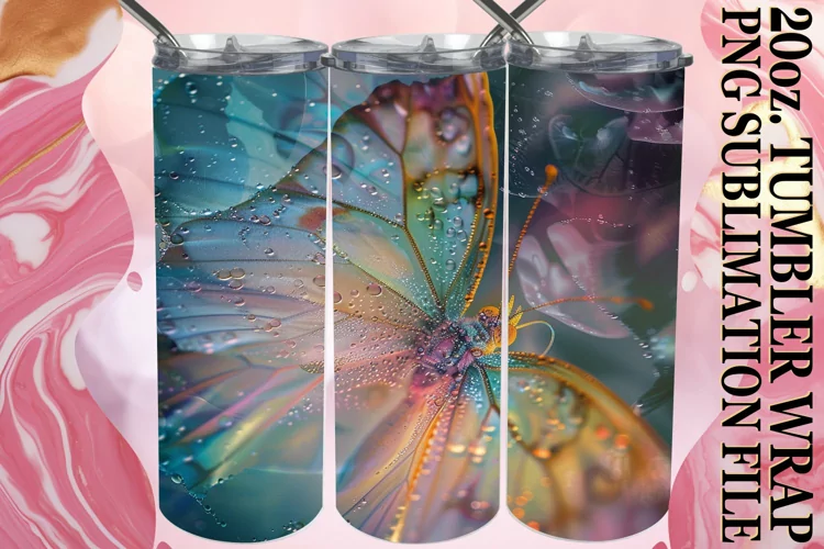 Glittery Butterfly Tumbler Wrap Sublimation 20oz