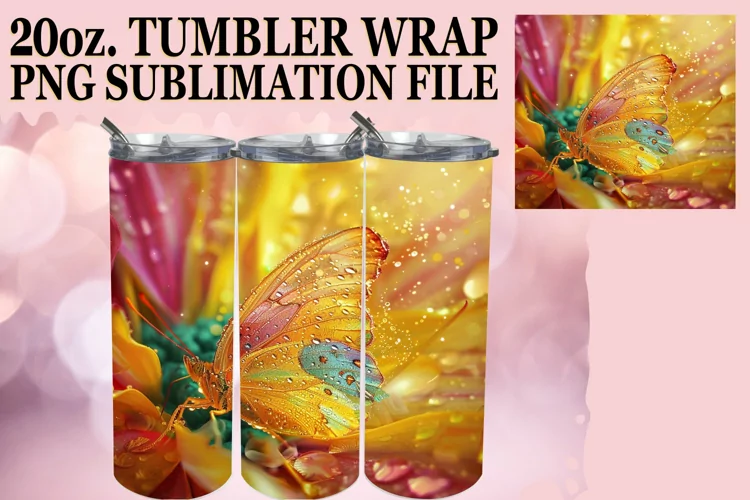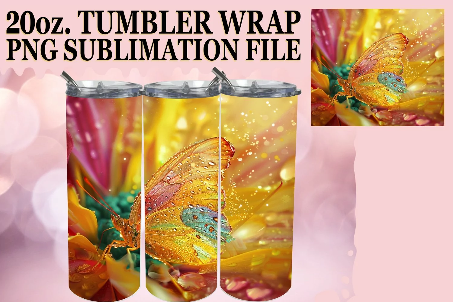 Shimmering Butterfly Tumbler Wrap PNG 20oz example image 1