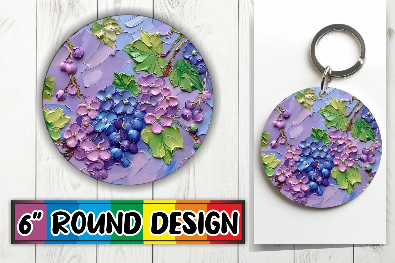 Bloom and Fruit Keychain Round Design Art example image 1