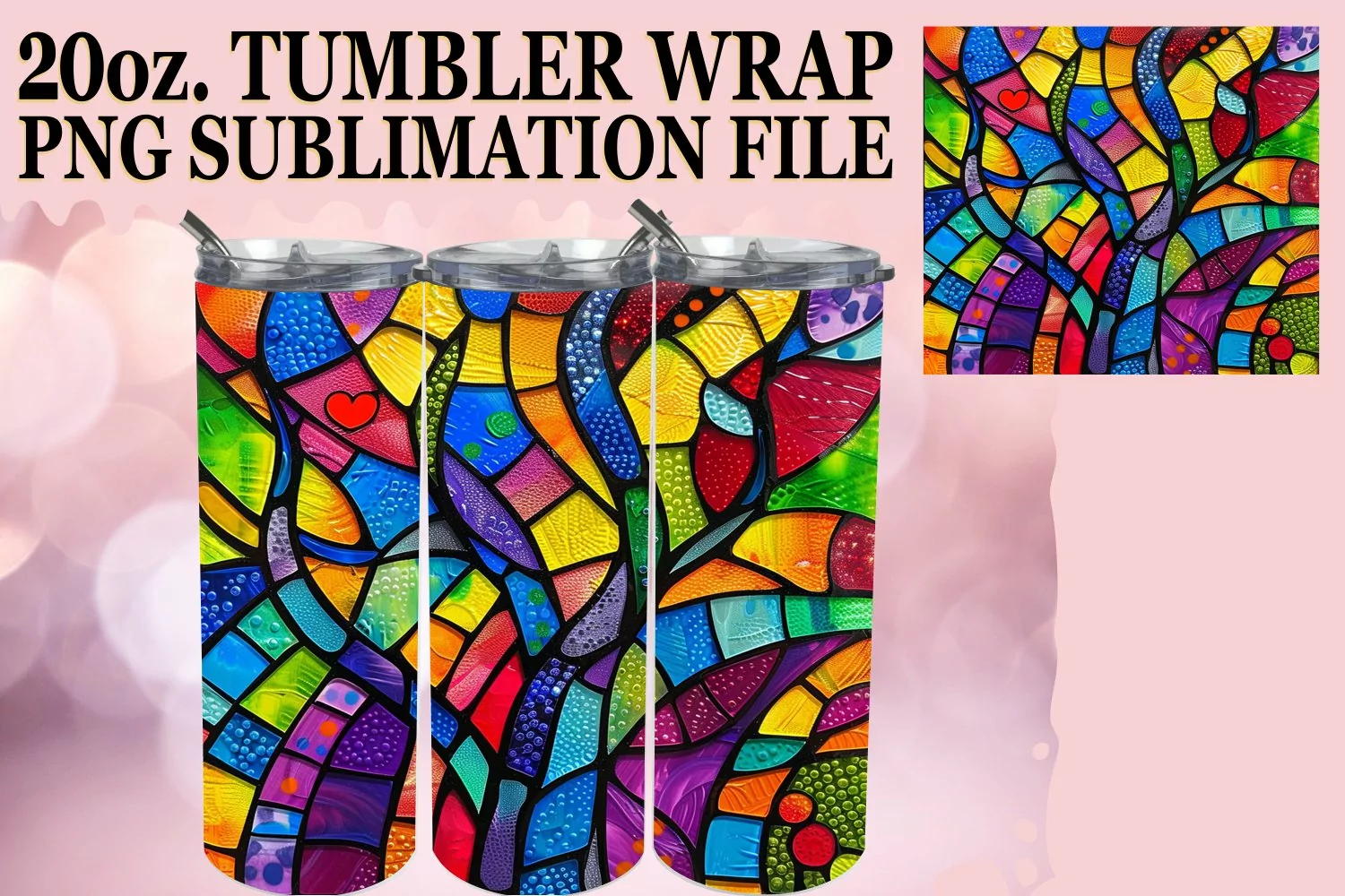 20oz Tumbler Wrap: Colorful Stained Glass Trees