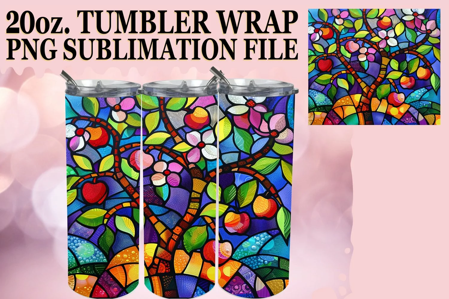 Colorful Stained Glass Tree Tumbler Design 20oz