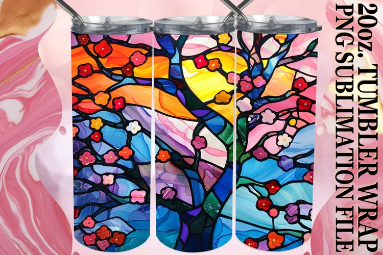 Similar Design Products to Vibrant Stained Glass Trees Tumbler Wrap 20oz