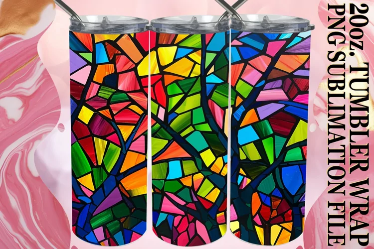 Stained Glass Tree Sublimation Wrap 20oz example image 1