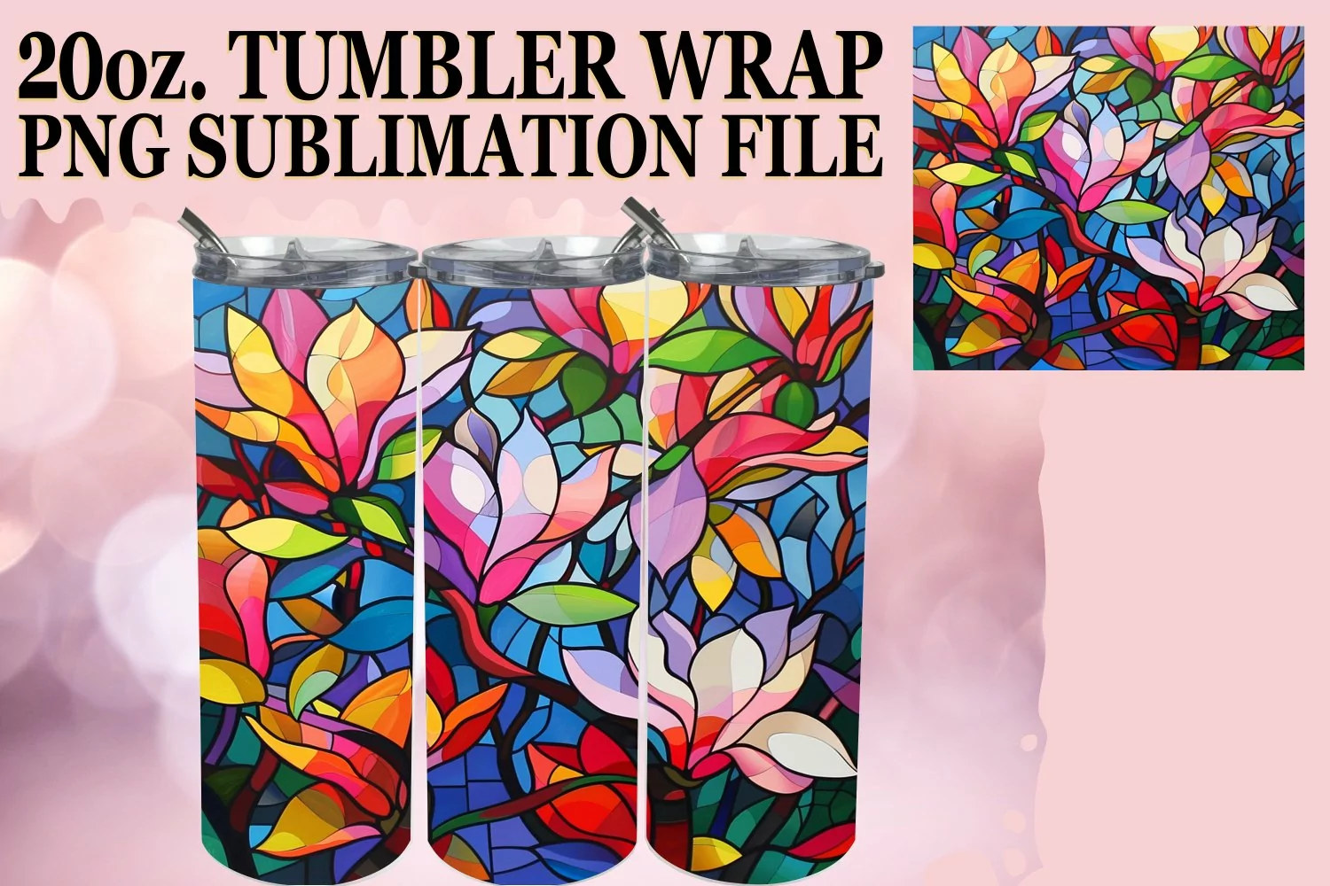 Stained Glass Tree Tumbler Wrap Design 20oz