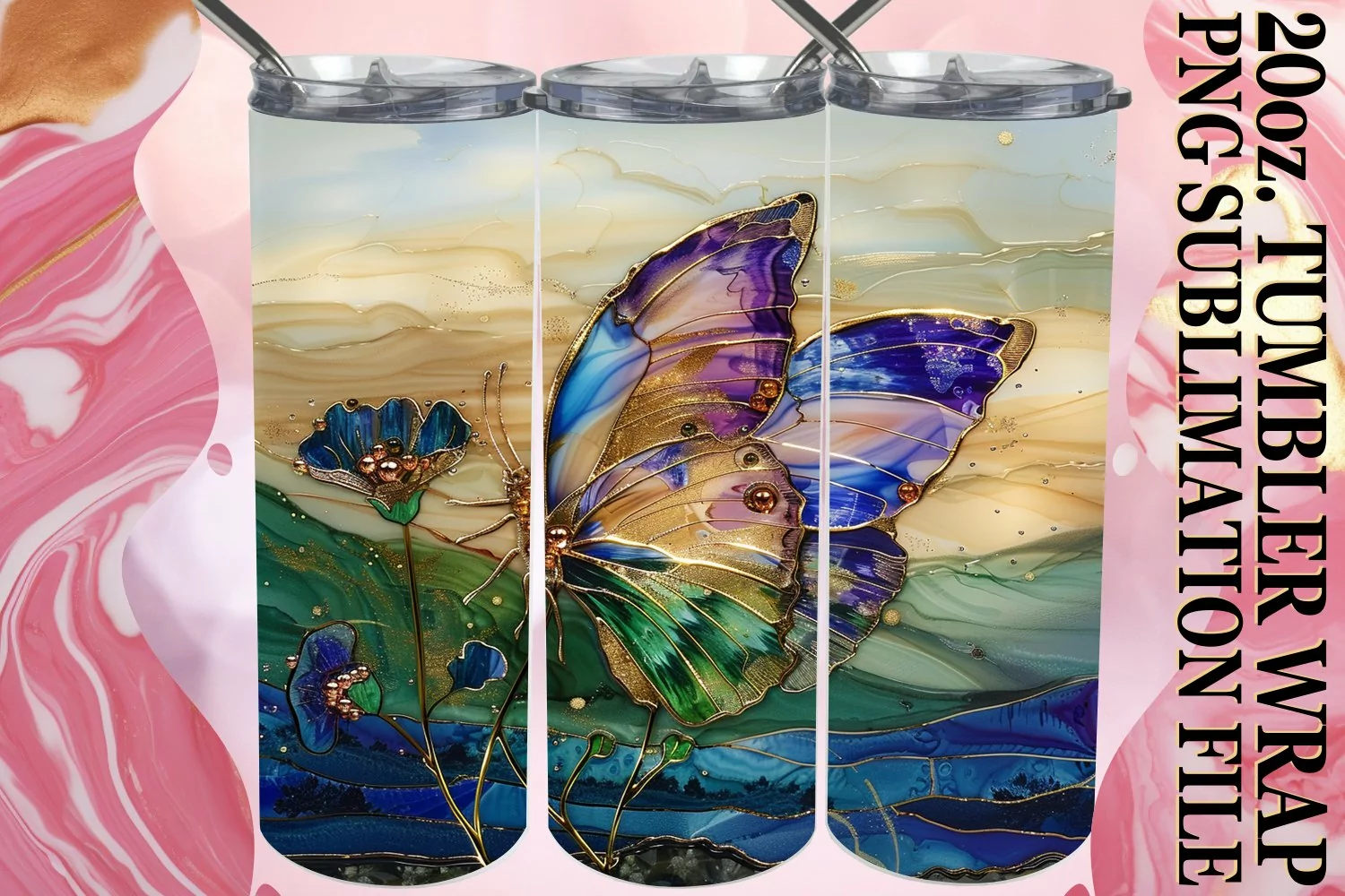 Sparkly Glitter Butterfly Tumbler Wrap 20oz example image 1