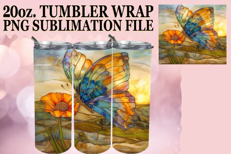 Stunning Glitter Butterfly Sublimation Wrap 20oz example image 1